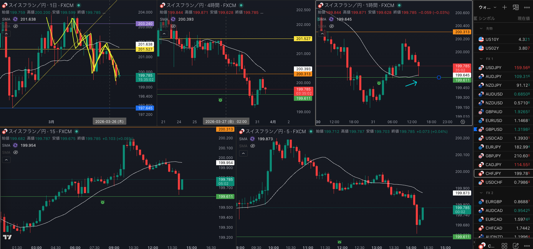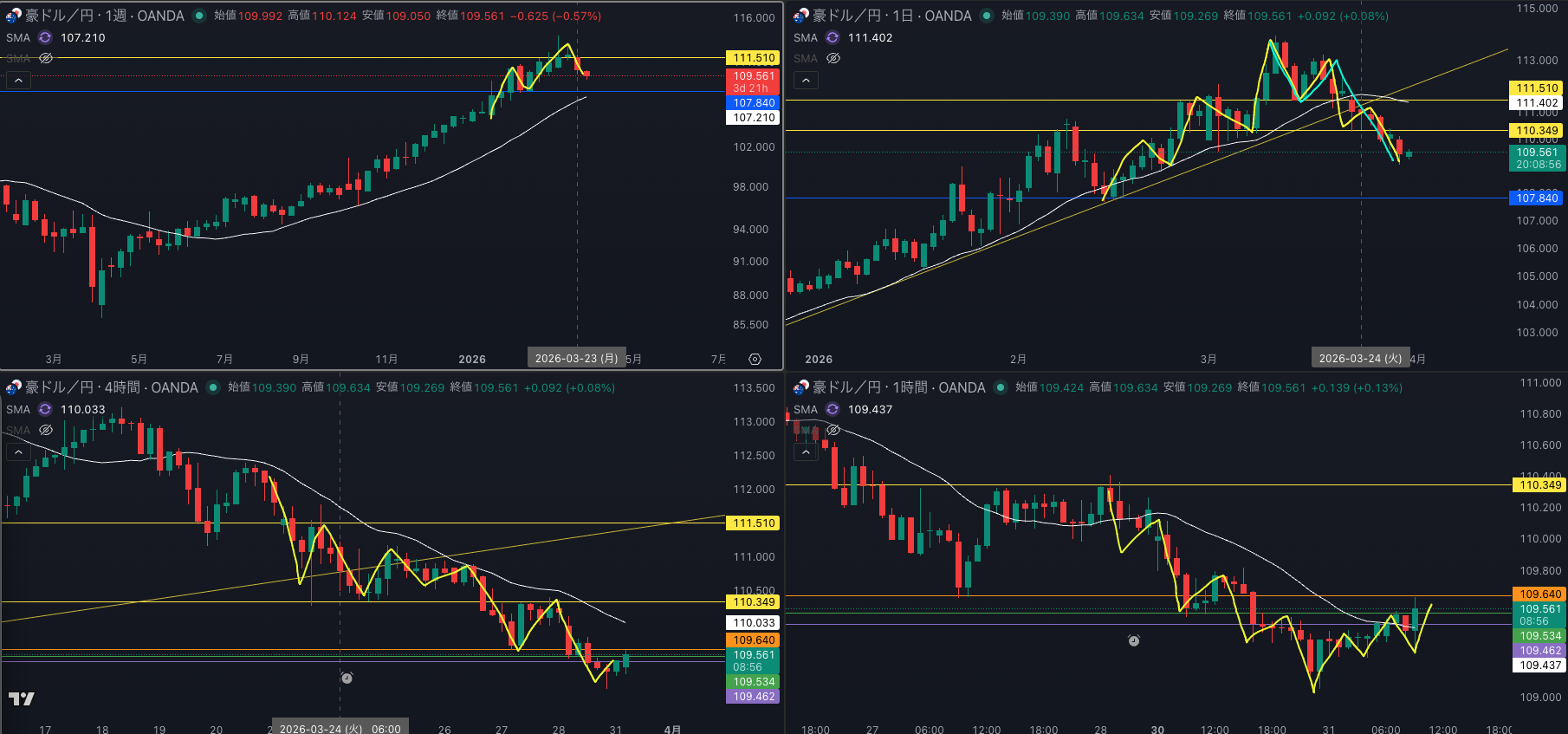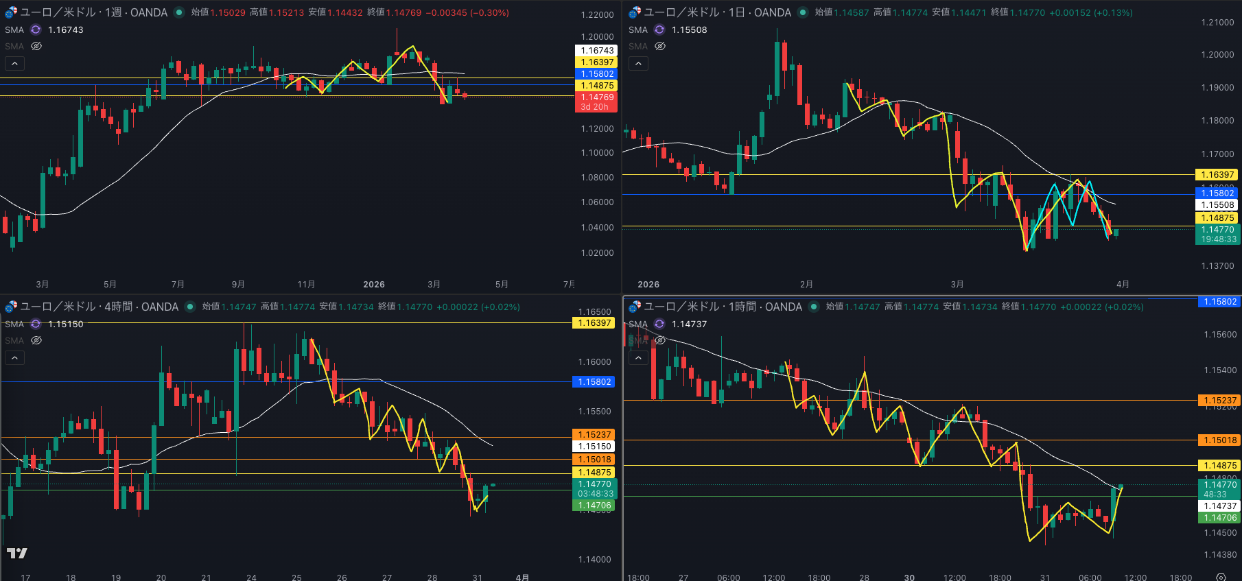 SMA・4時間SMAは 下降 売り抑え