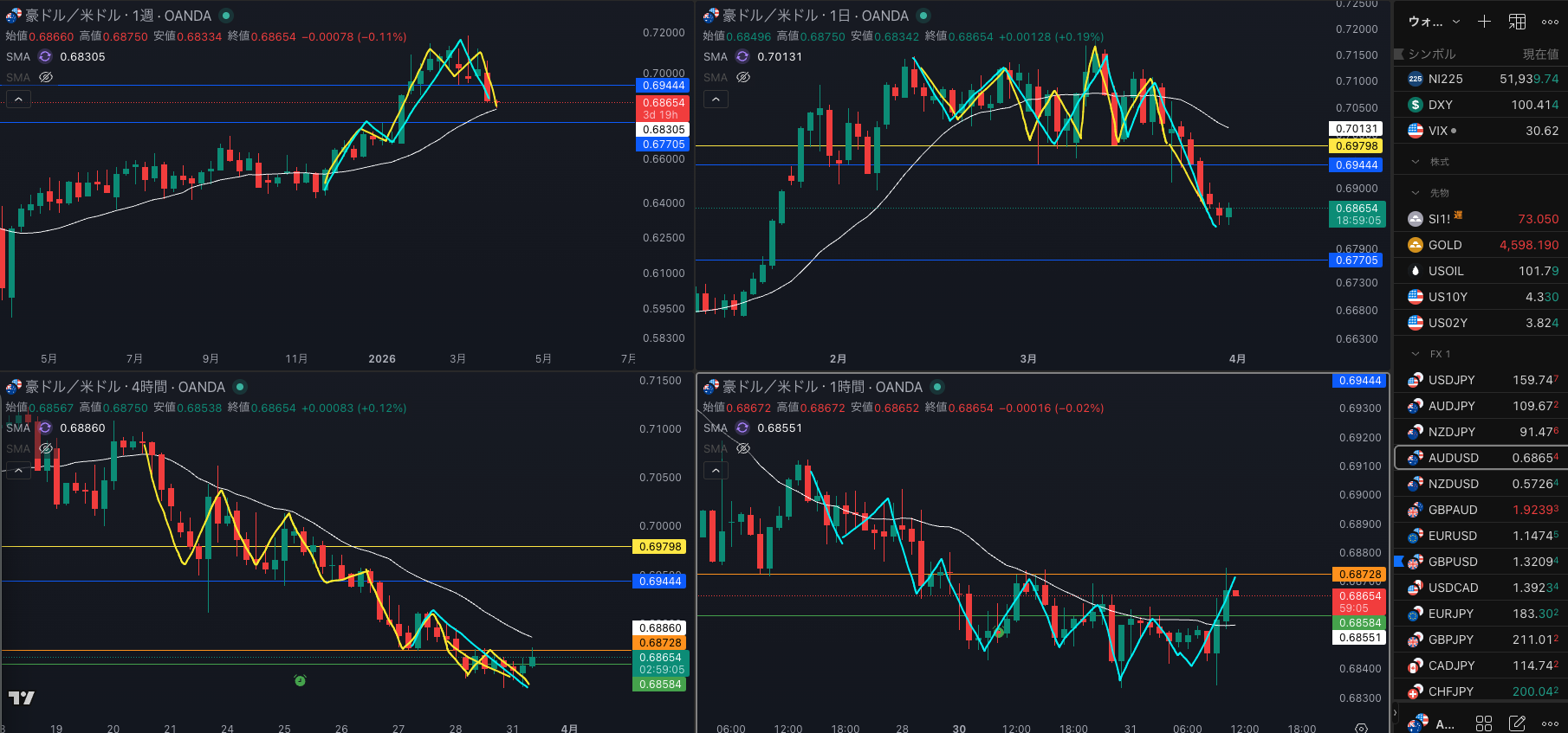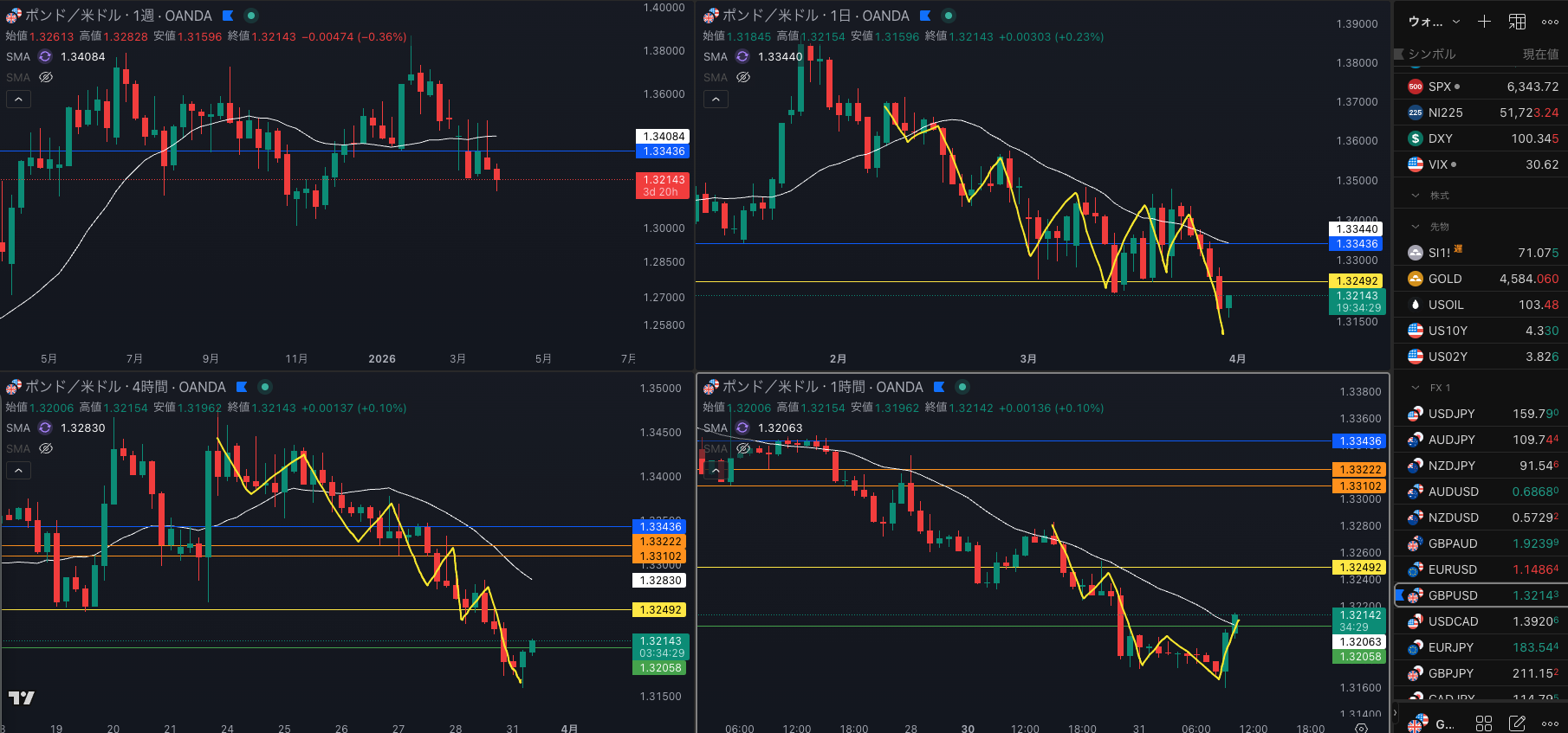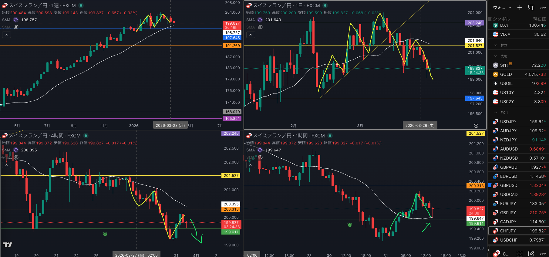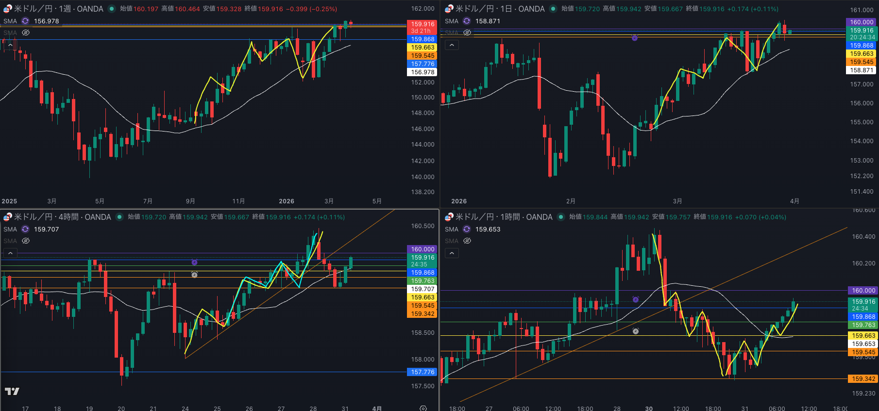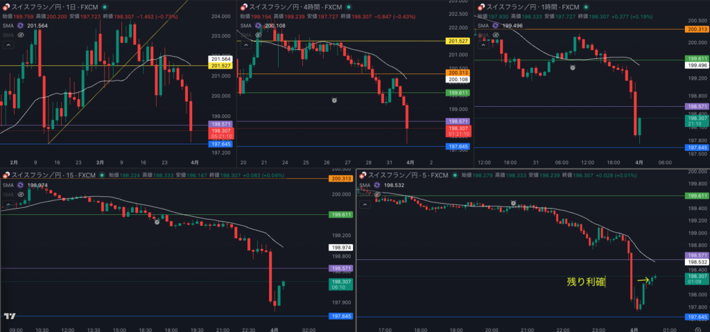 4時間迷う 週足 SMAもあって