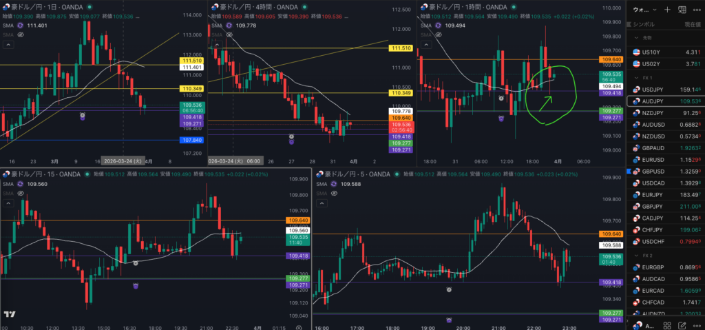 SMA・4時間SMA 上昇 買い支え