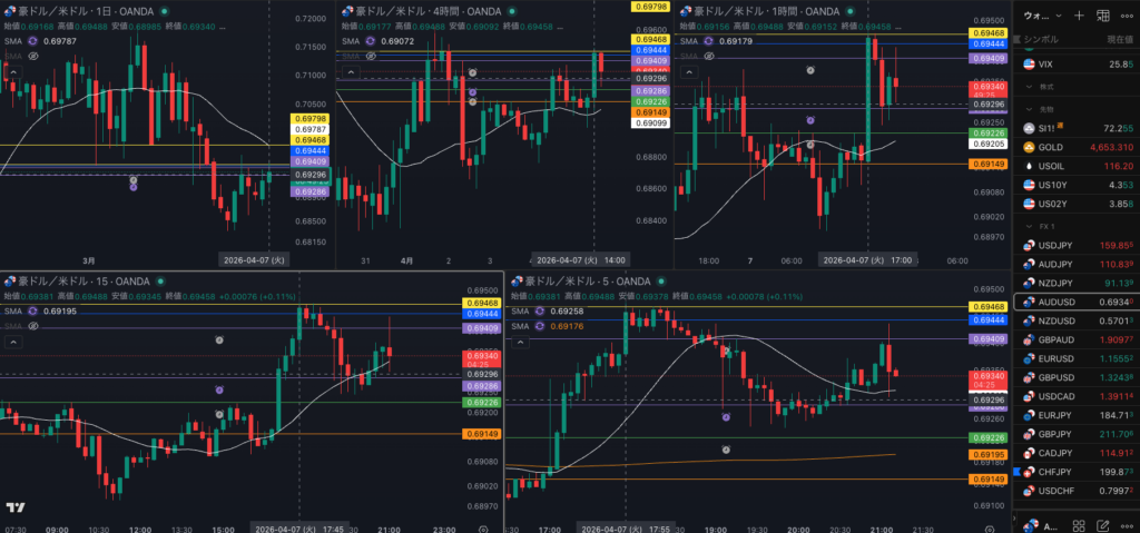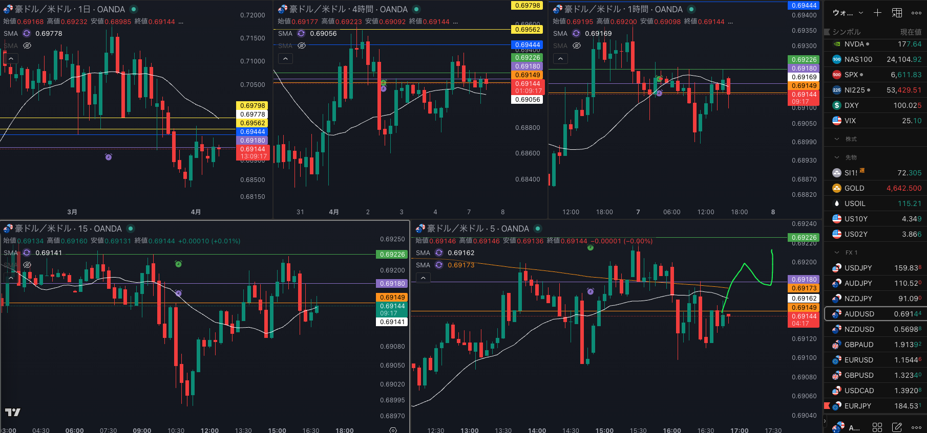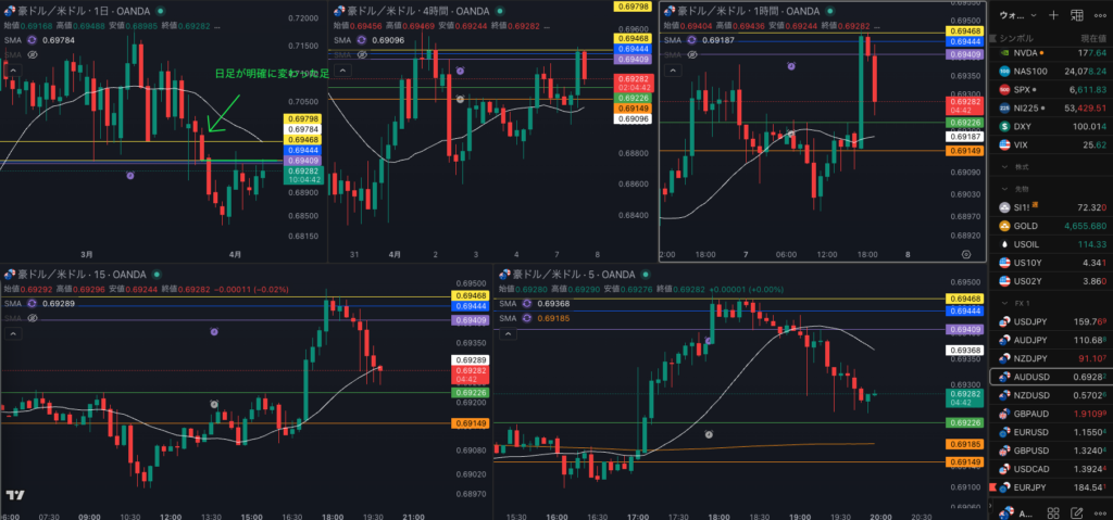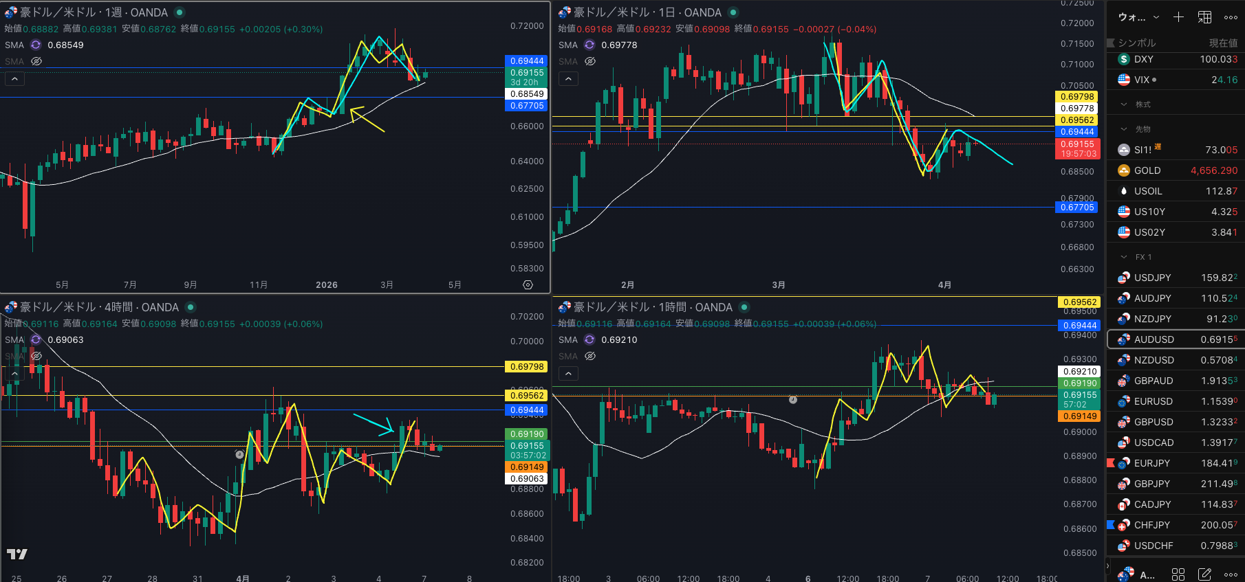 豪ドルの方が明確に 4時間は上
