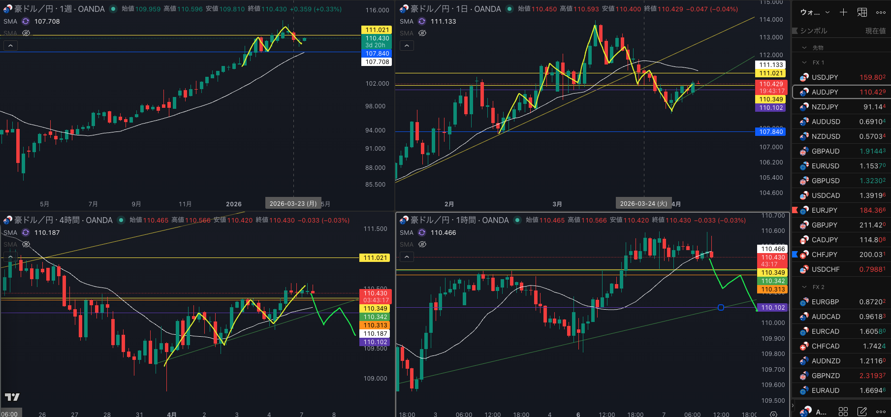 SMA・4時間SMAは 下降
