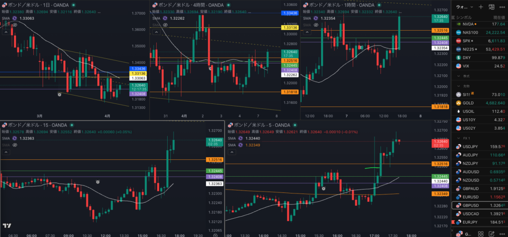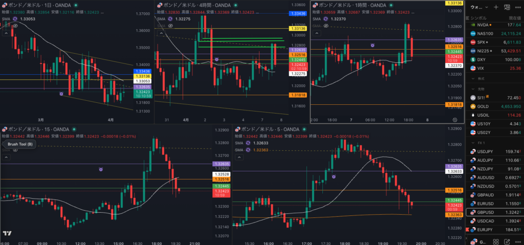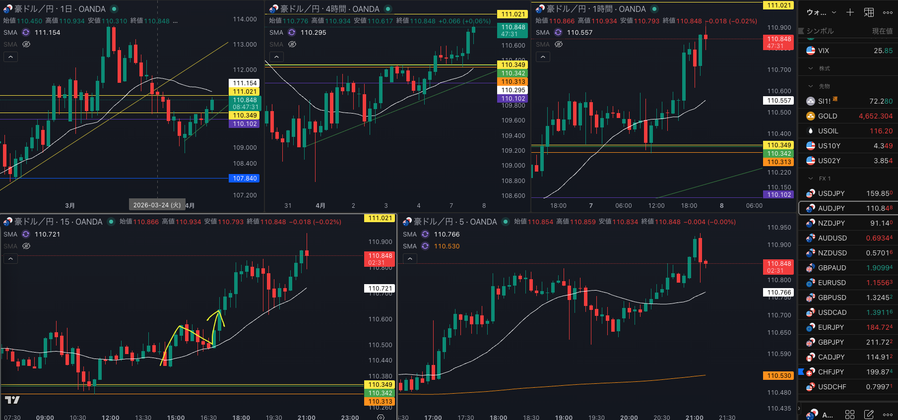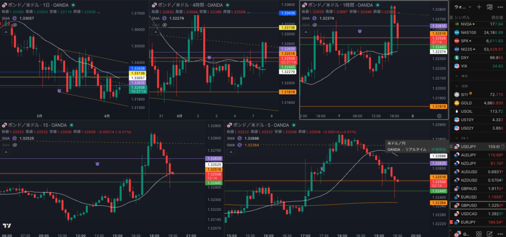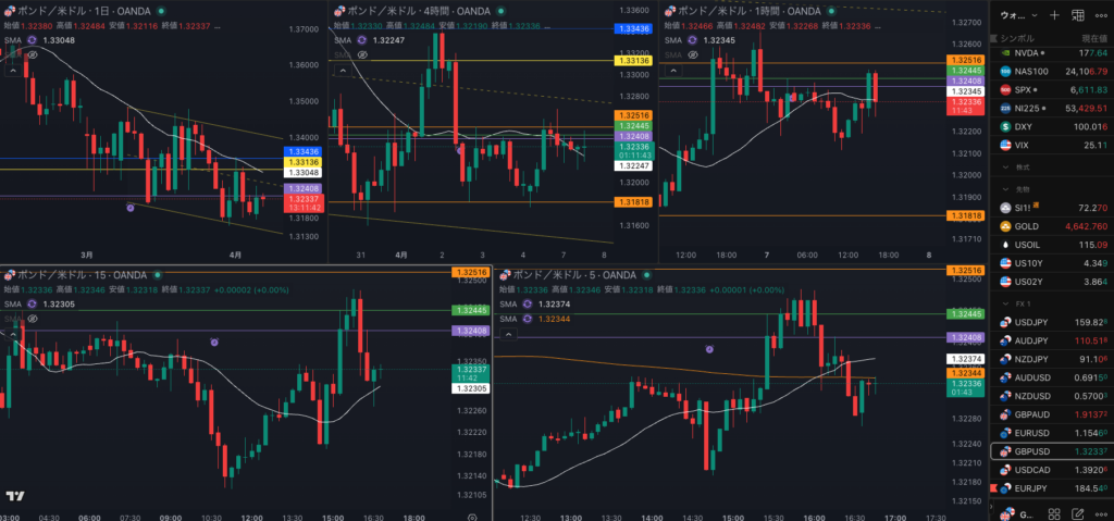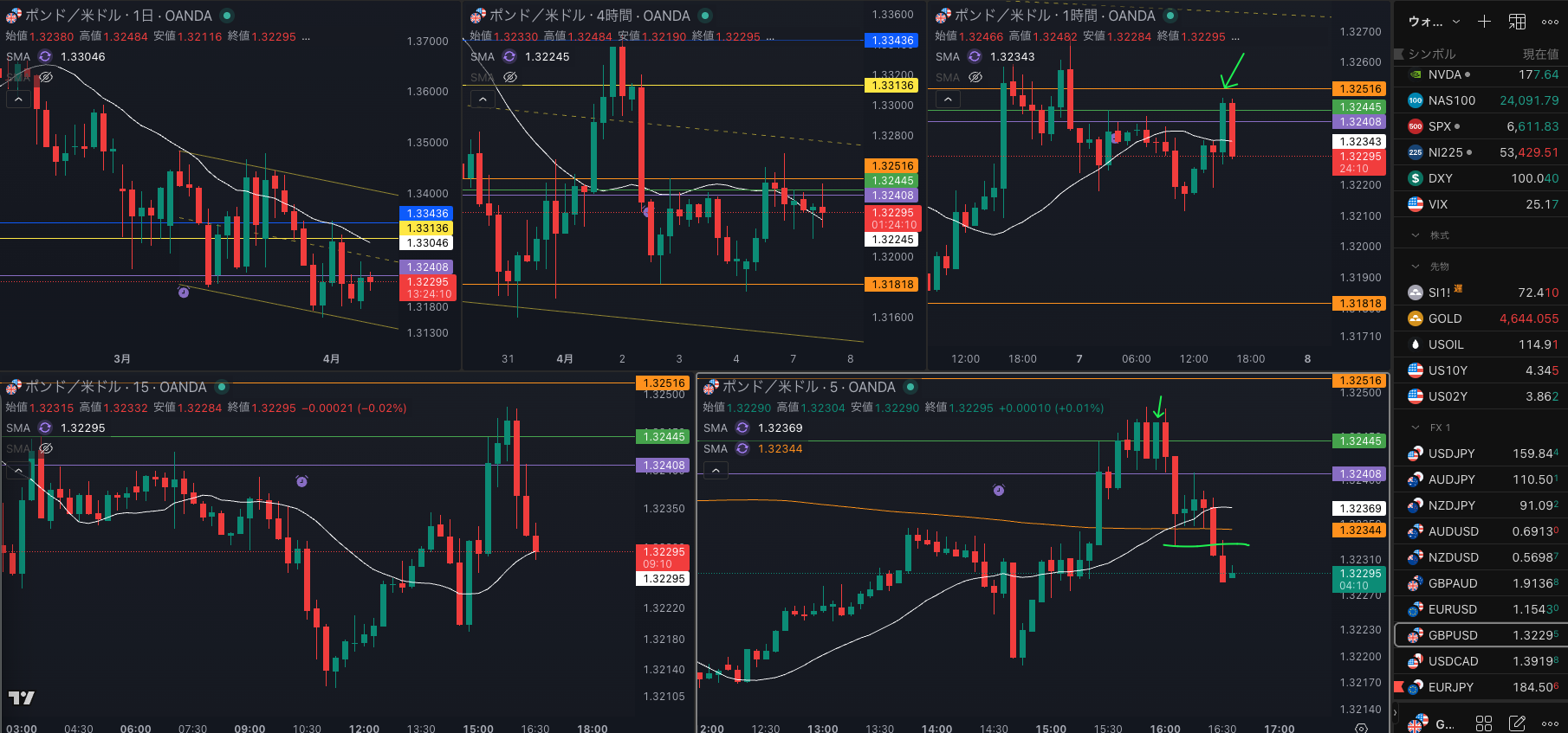 日足のレジスタンスで1時間戻り売りで4時間 SMAを試すか・・・