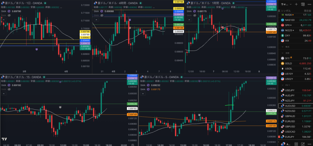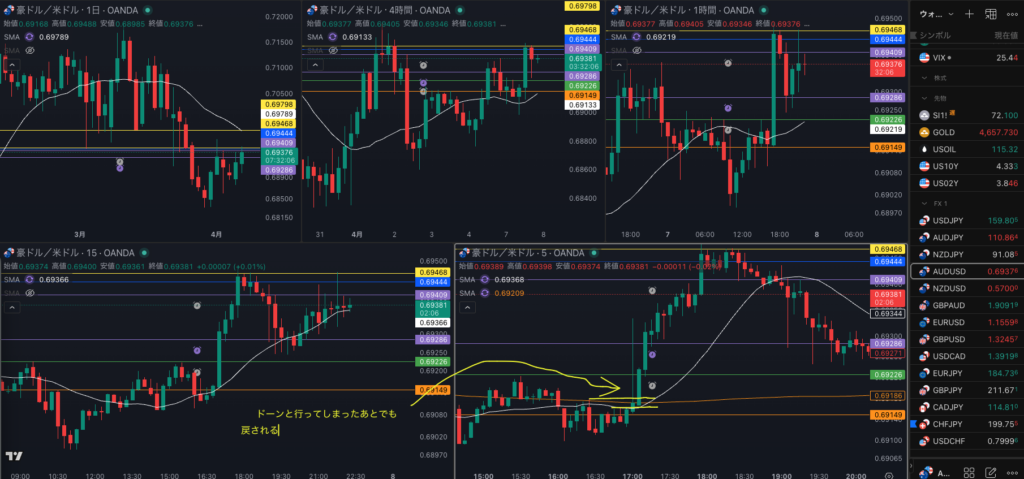 - ドーンと行ってしまったが エントリーポイントまで戻ってきたら 豪ドル