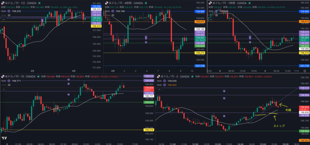 ・中段持ち合いの1時間トレードだったな