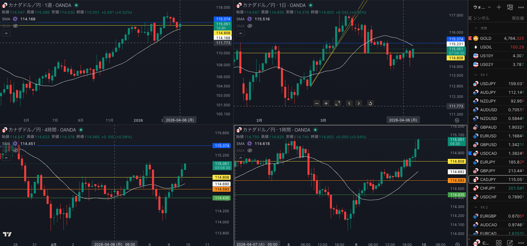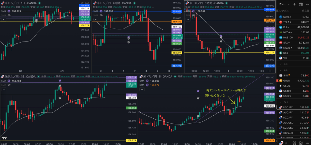・4時間 押し目がいだったが、日足のsma 入れ無いだろうな