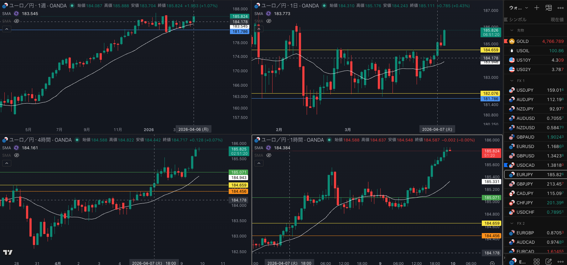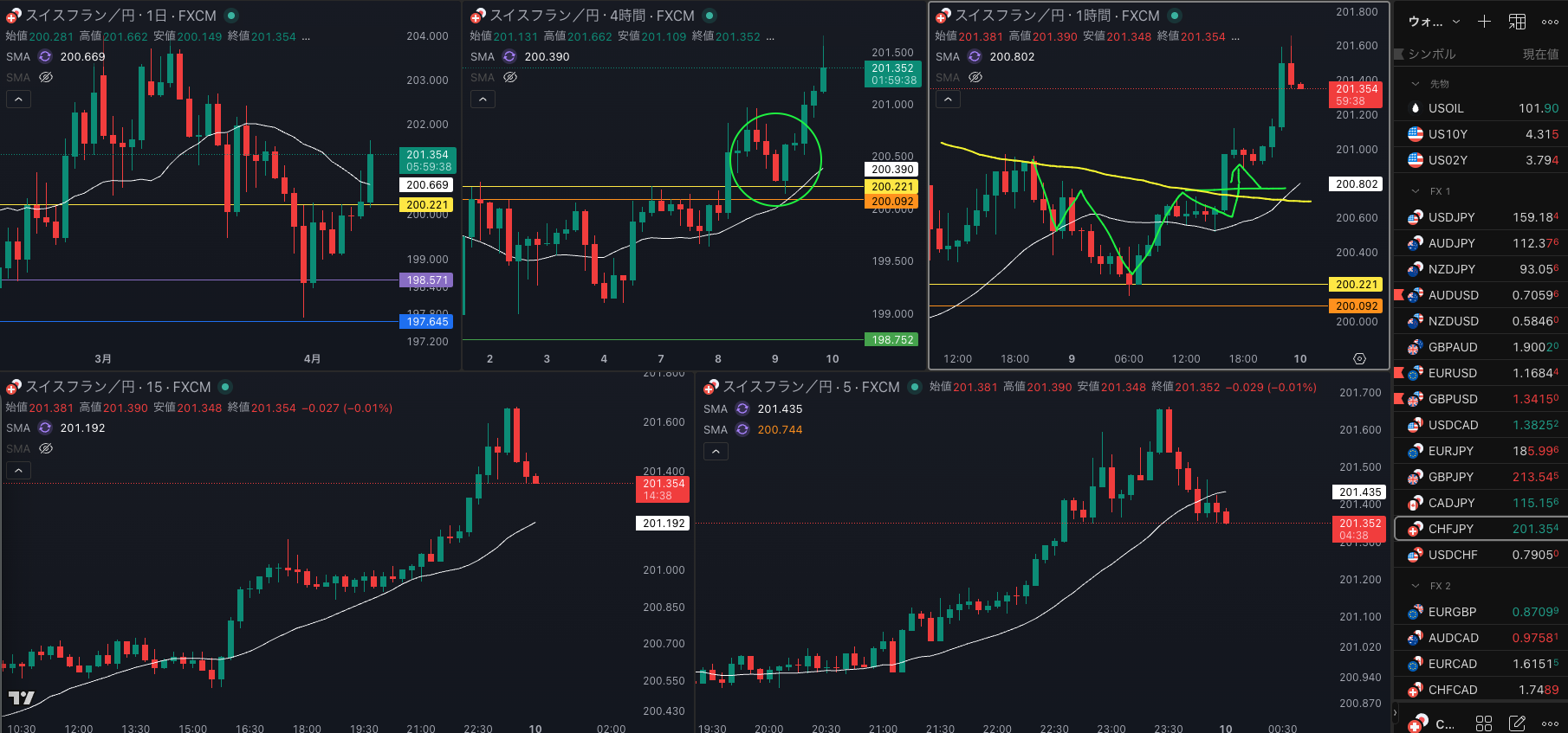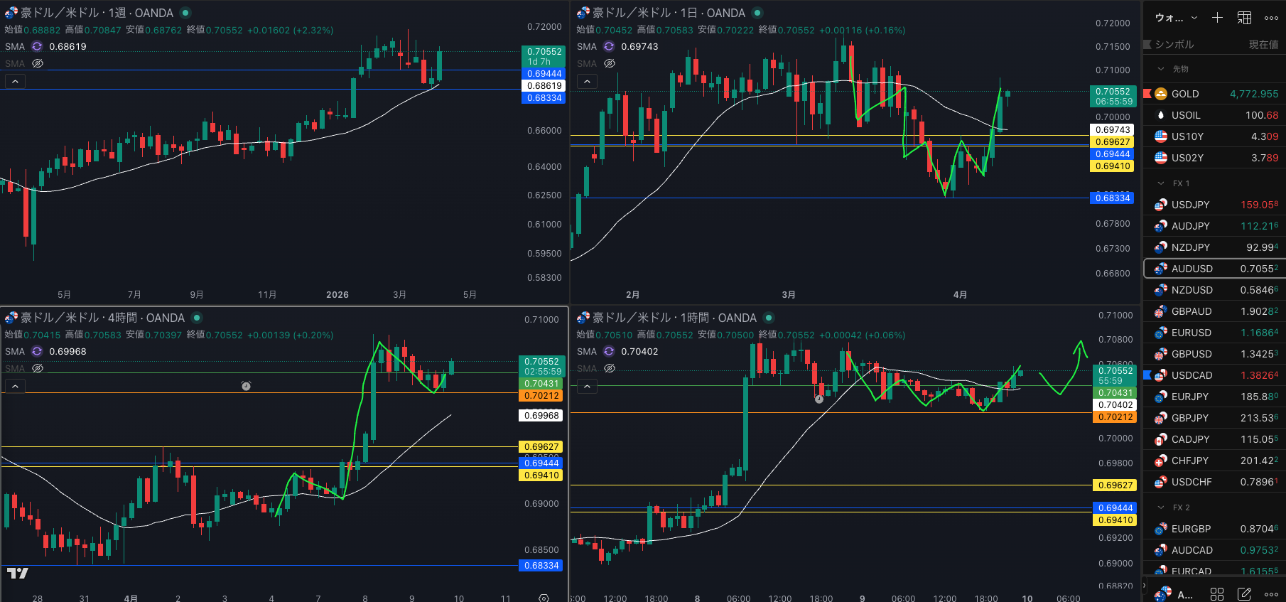 SMA・4時間SMAは 上昇