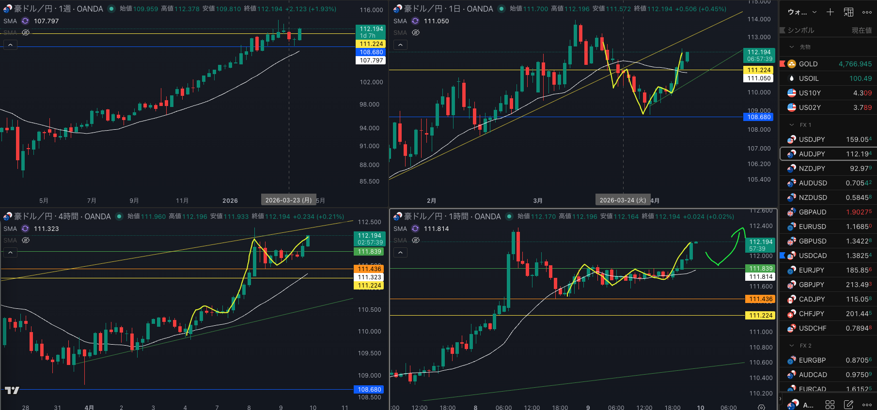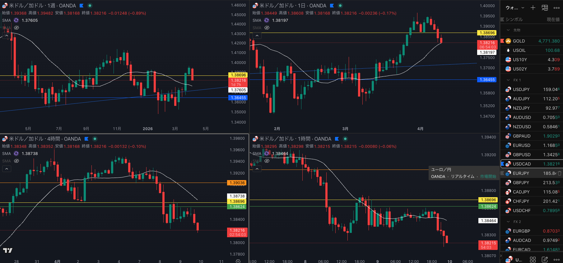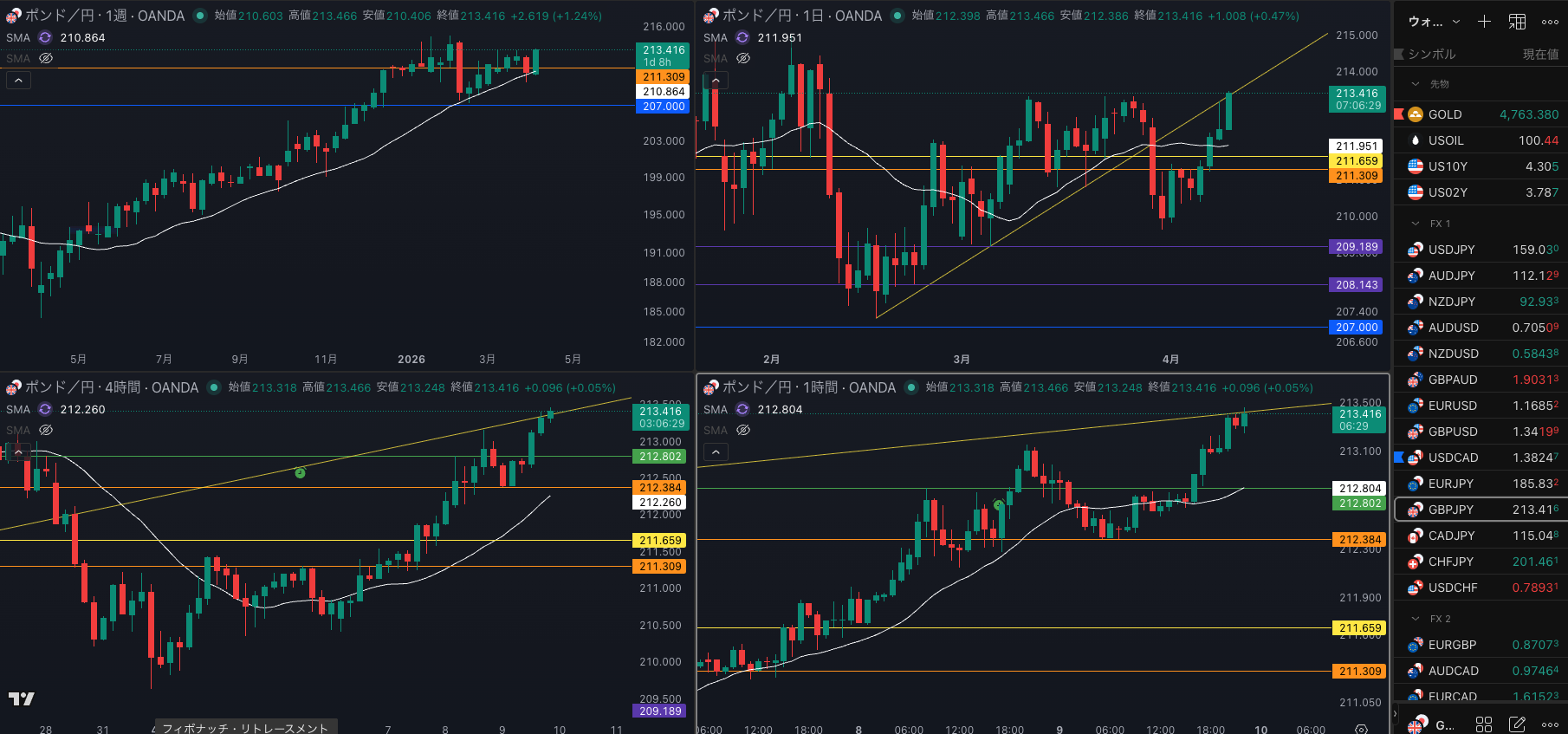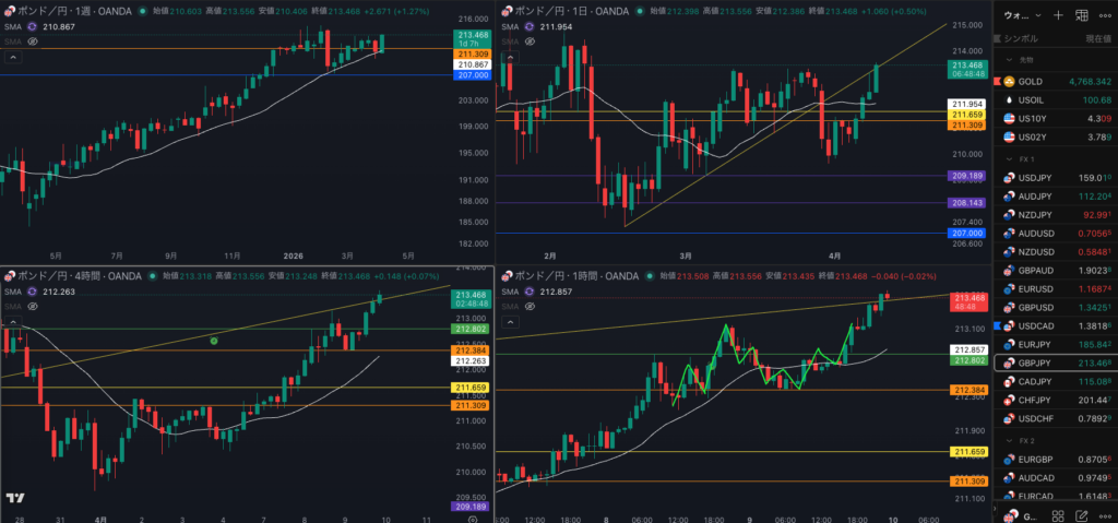 SMA・4時間SMAは 上昇