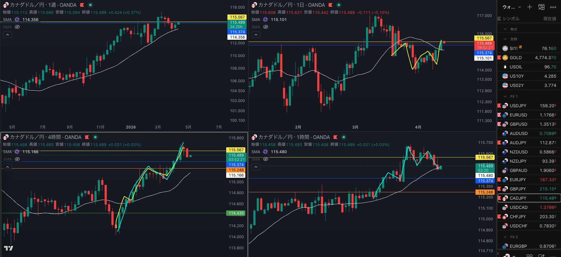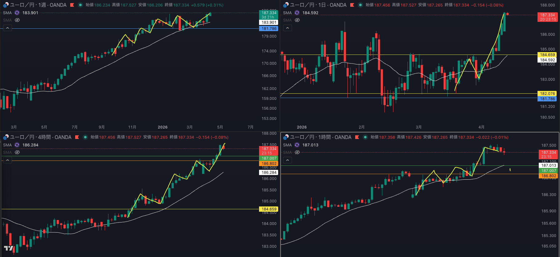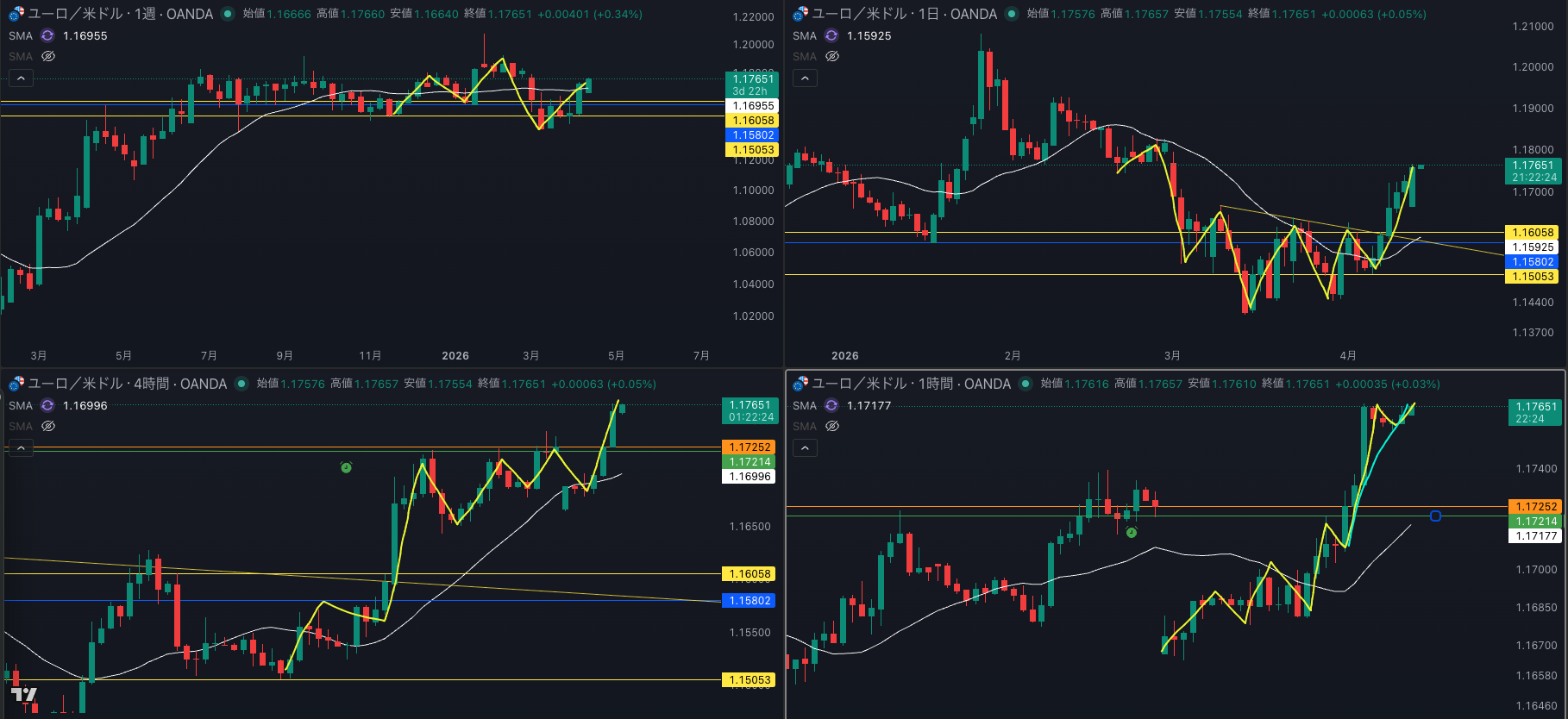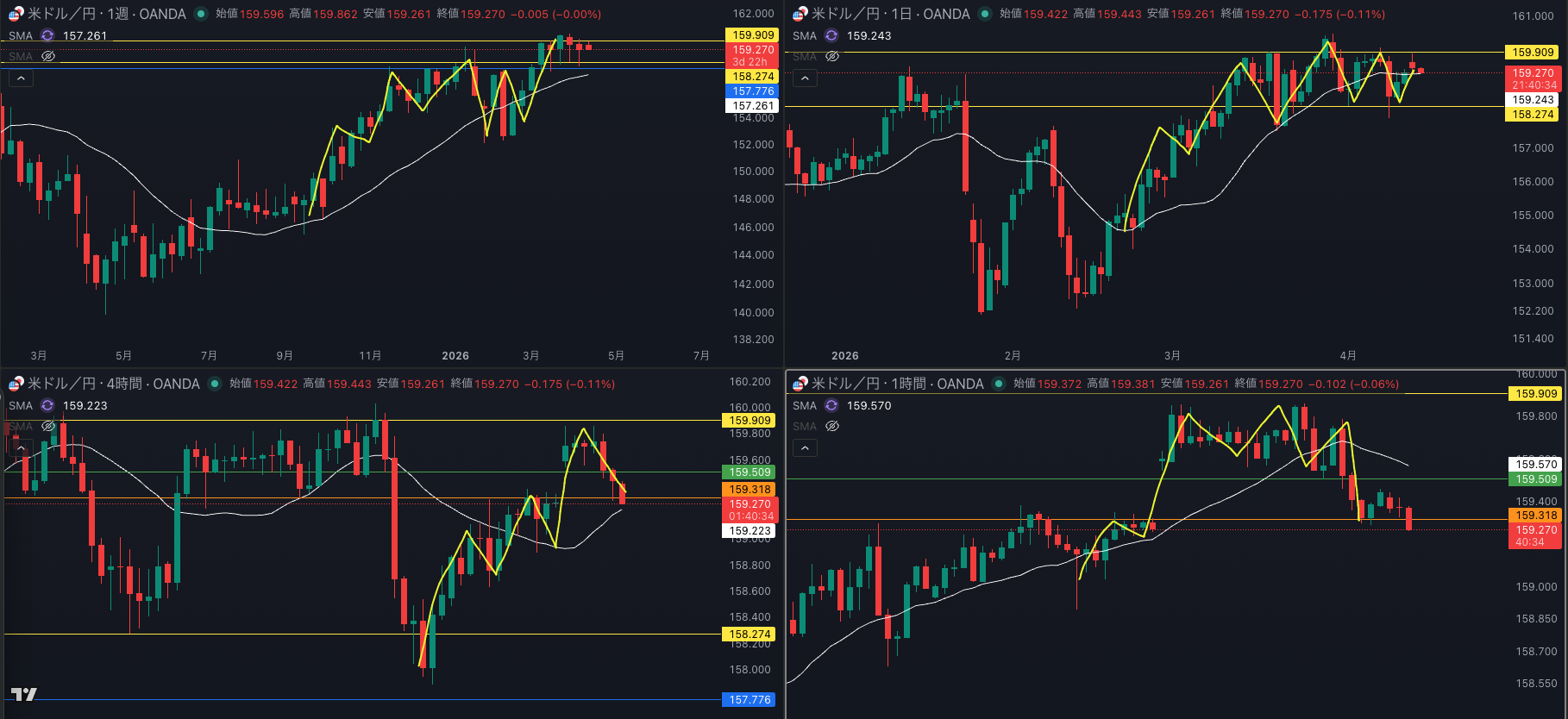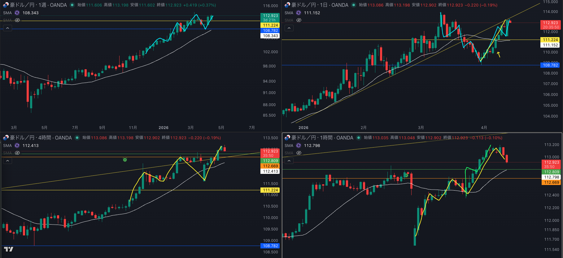 1時間節目は弱いし SMA反発下位足押し目も入らず