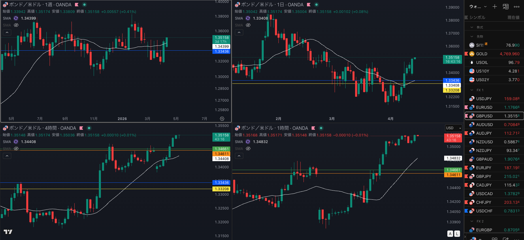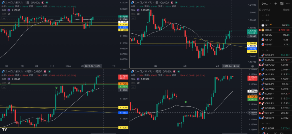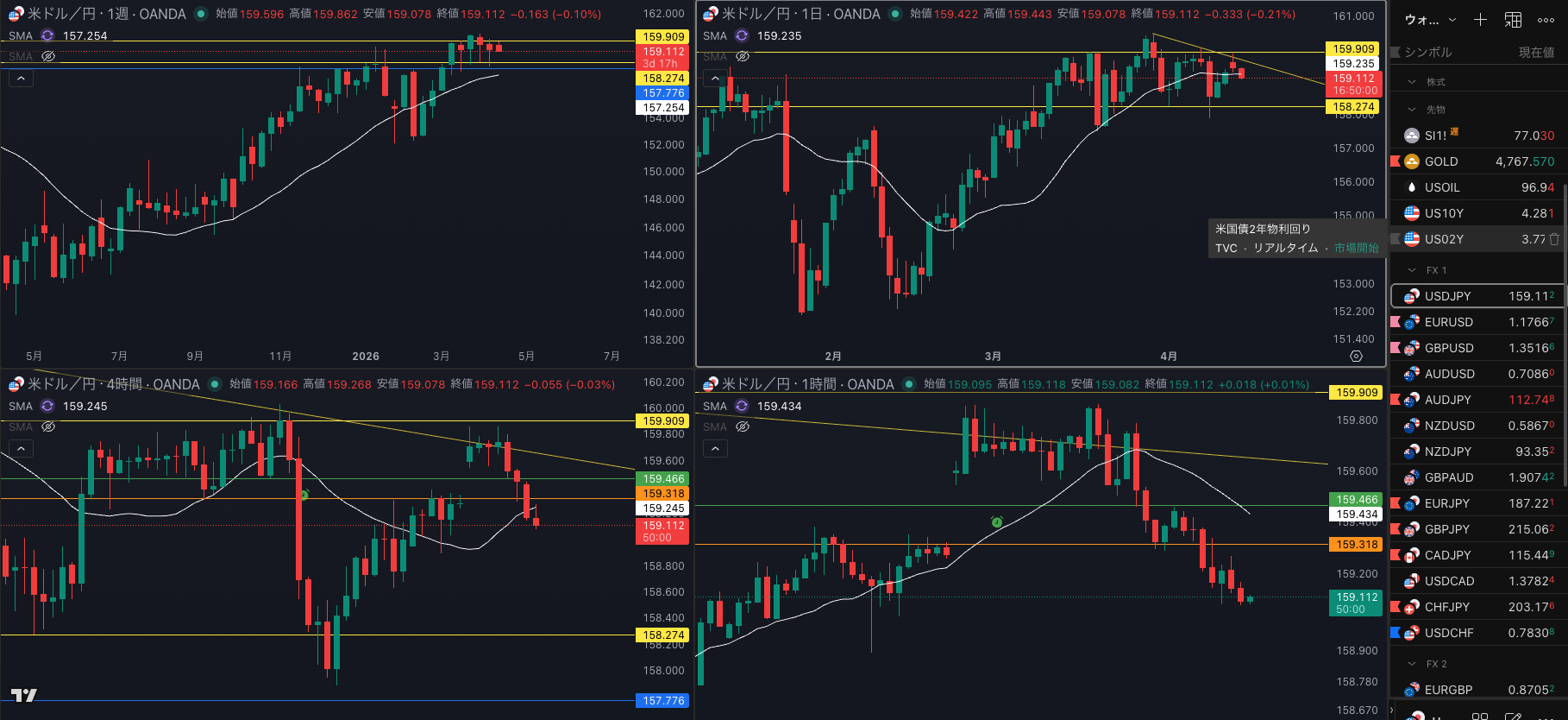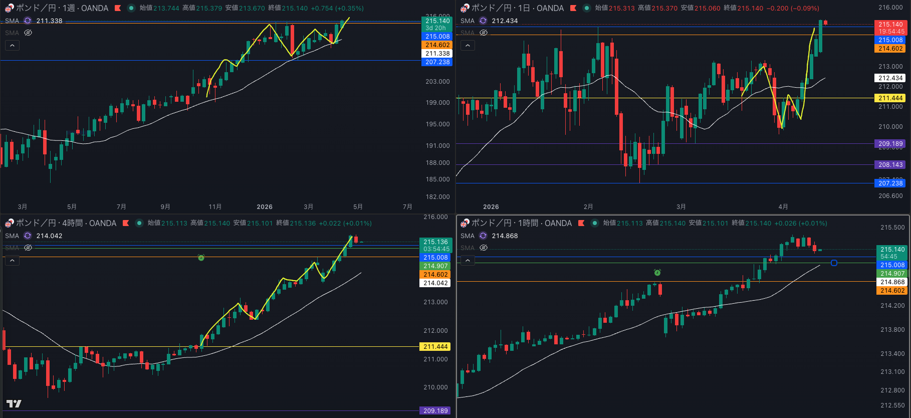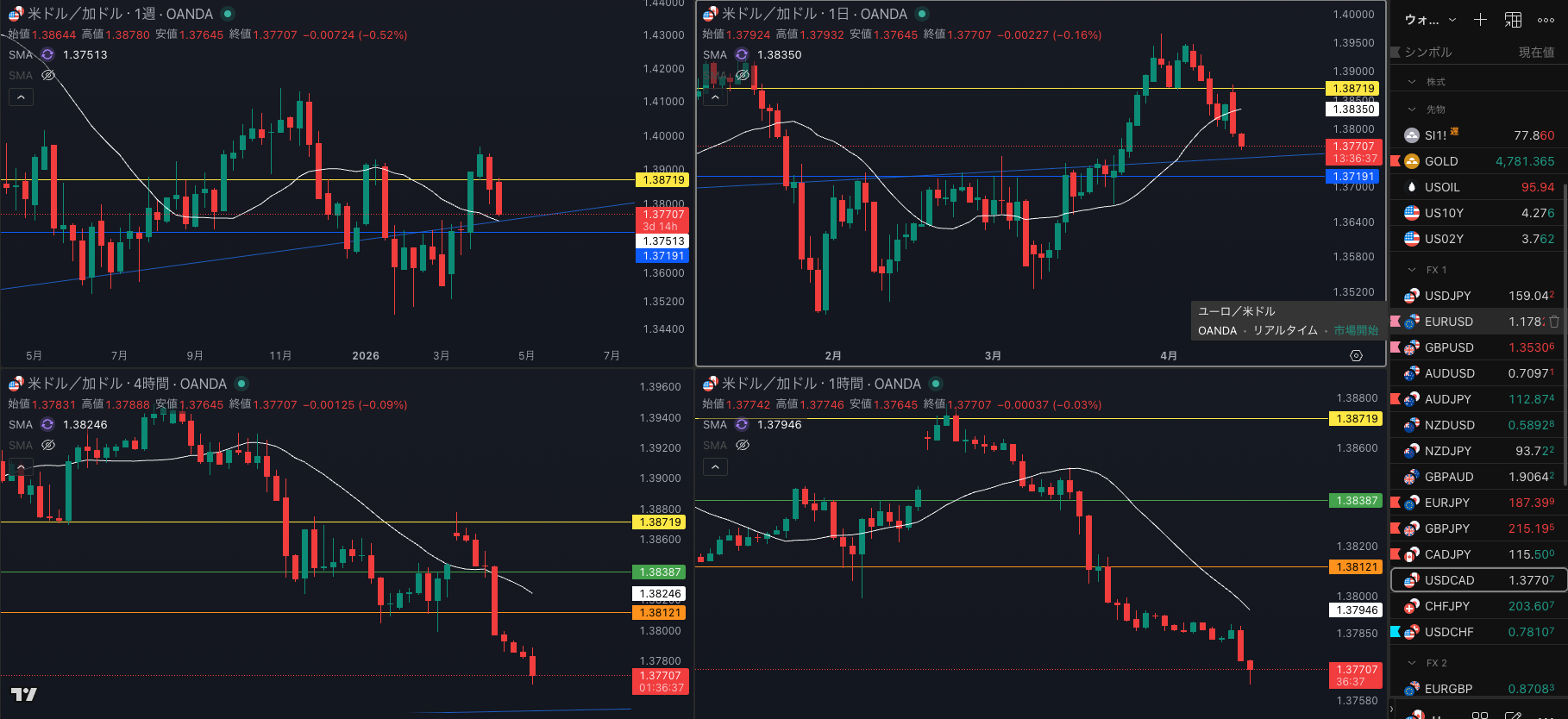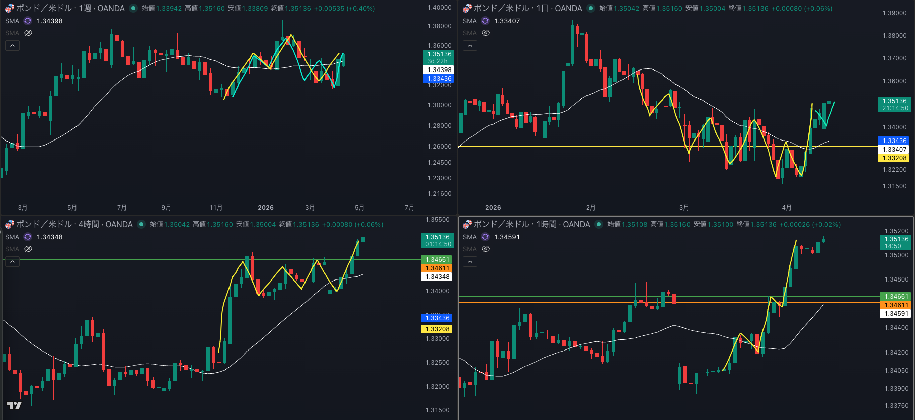 1時間節目は弱いし SMA反発下位足押し目も入らず