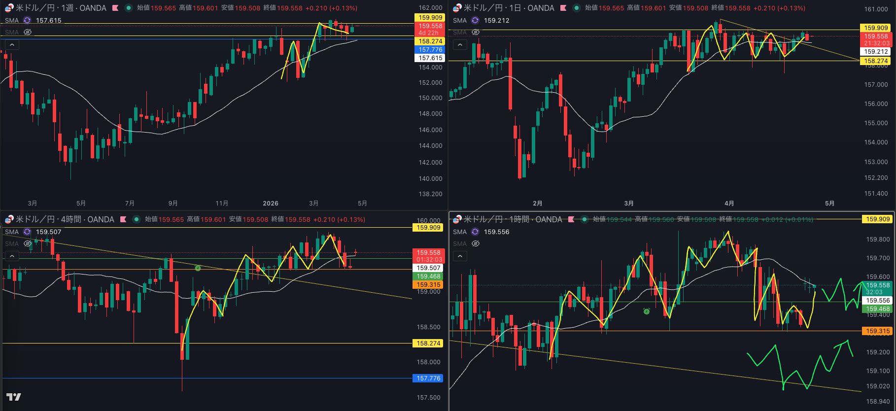 SMA・1時間SMAは下降