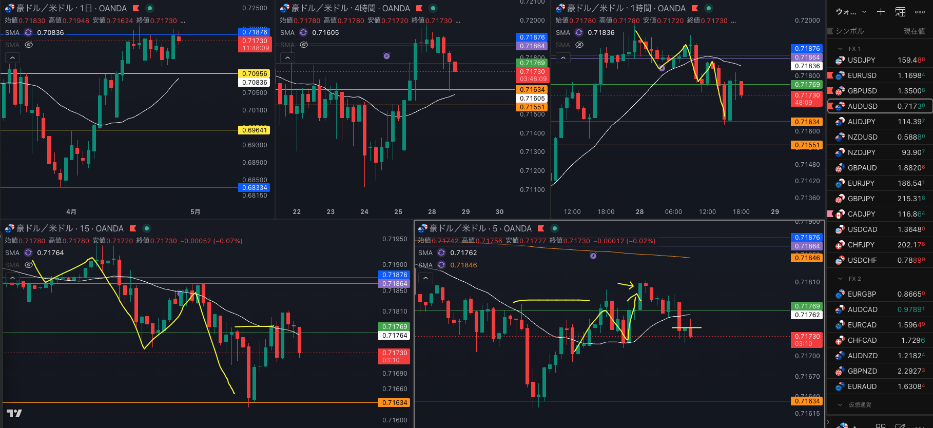 SMA・1時間SMAは 下降