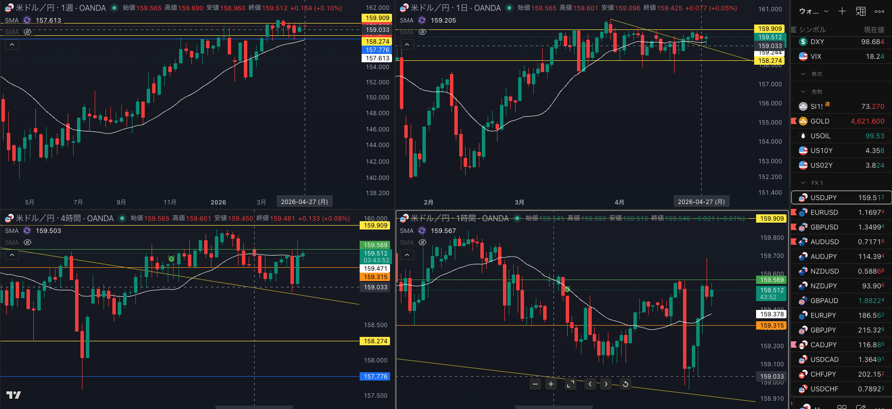 SMA・週足SMAは上昇 買い支え