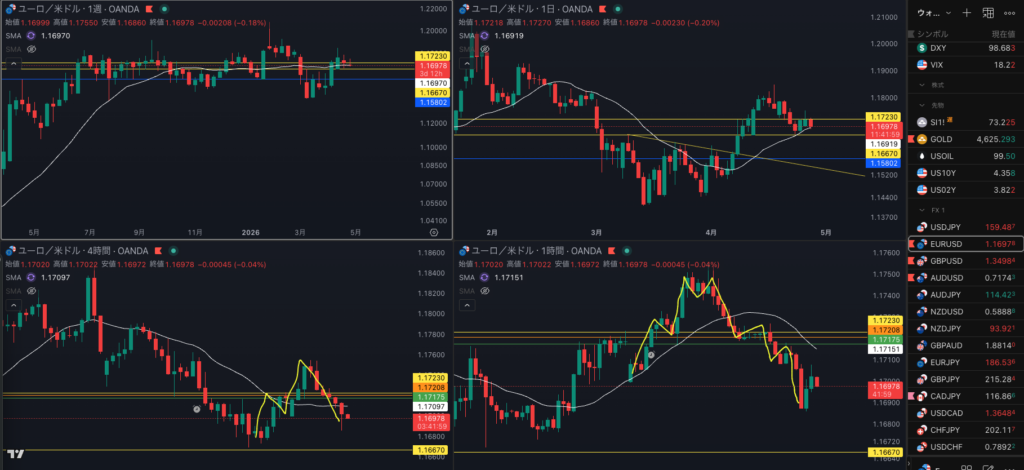 1時間のトレンドフォローで4時間の転換を狙うか・・