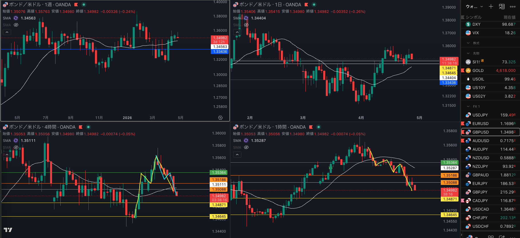 SMA・4時間SMA グランビルし始め